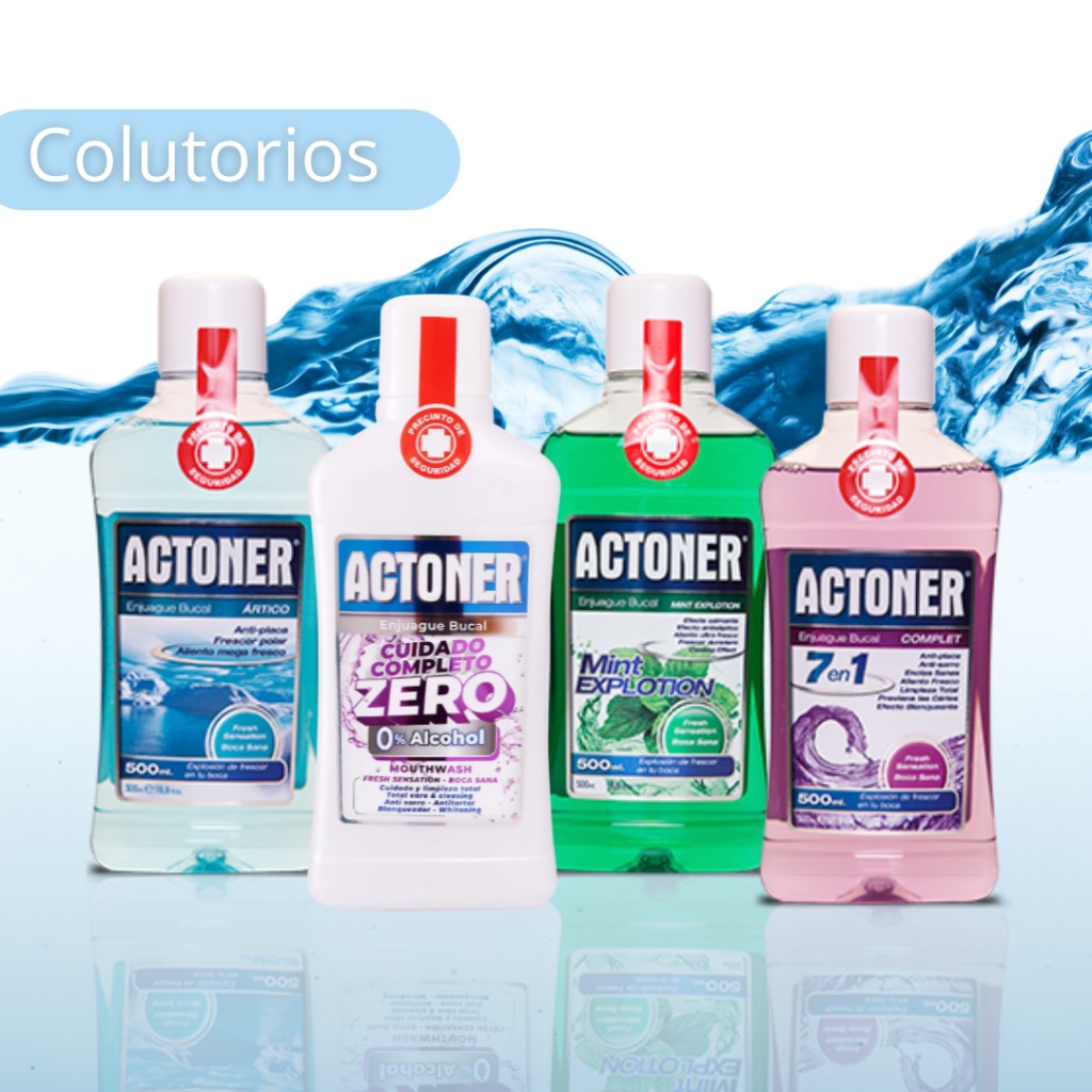 En ACTONER nos especializamos en desarrollar soluciones eficaces para el cuidado y la higiene personal, combinando innovación y calidad en cada producto. Nuestra gama de colutorios está formulada para eliminar bacterias, combatir la placa y ofrecer una sensación duradera de frescor y limpieza en toda la boca, con opciones específicas para necesidades como la halitosis o las manchas de tabaco.